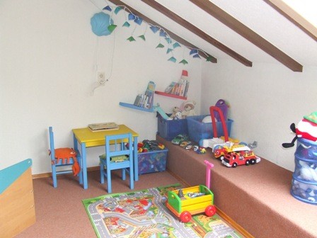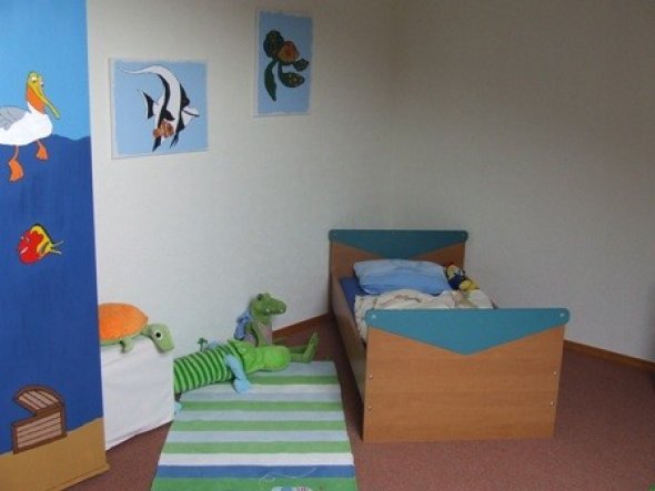 7.406Das ist das Zimmer unseres Sohnes Mika(20 Monate). Ich bin immmer etwas am umdekorieren, da wir leider keine Farbe an die Wände bringen dürfen (unser Vermieter ist Maler und hat die Wohnung vor unserem Einzug hergerichtet und möchte nun nicht das wir das umstreichen auch wenn wirs bei nem Auzug wieder weiß machen würden, Streit wollen wir deswegen keinen also ists halt ne weiße Wand, andere haben auch nur weiße Wände und leben auch noch;-) )siehts durch die weißen etwas kahl aus, aber ich bin schon dabei neue Bilder zu malen, die das ganze etwas auflockern sollen.