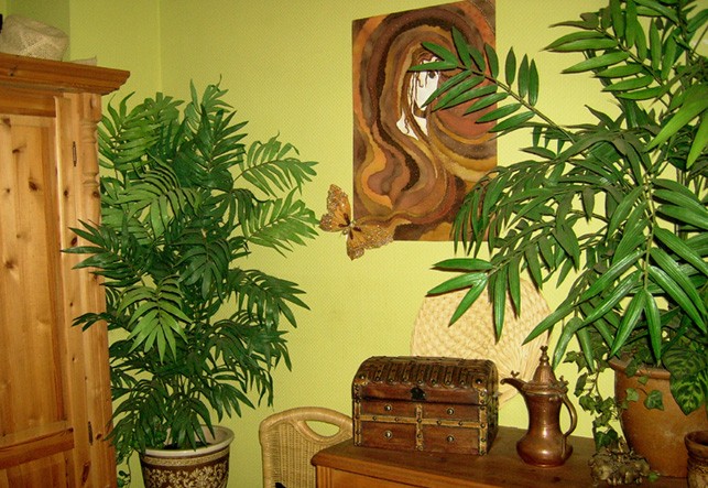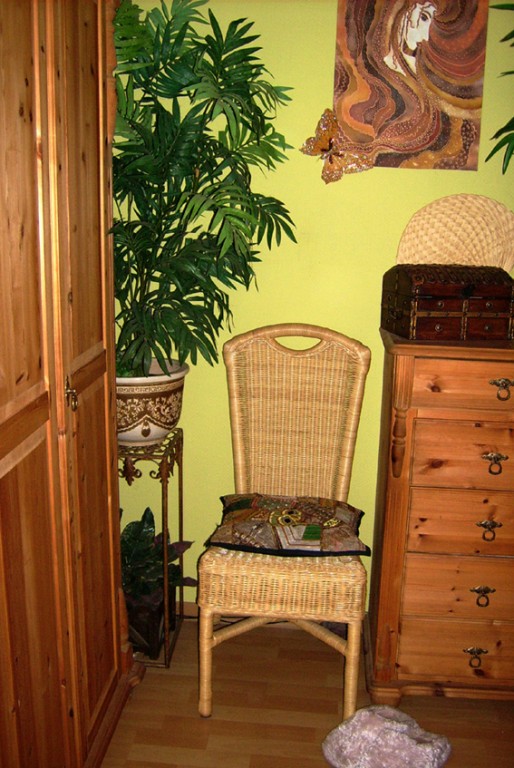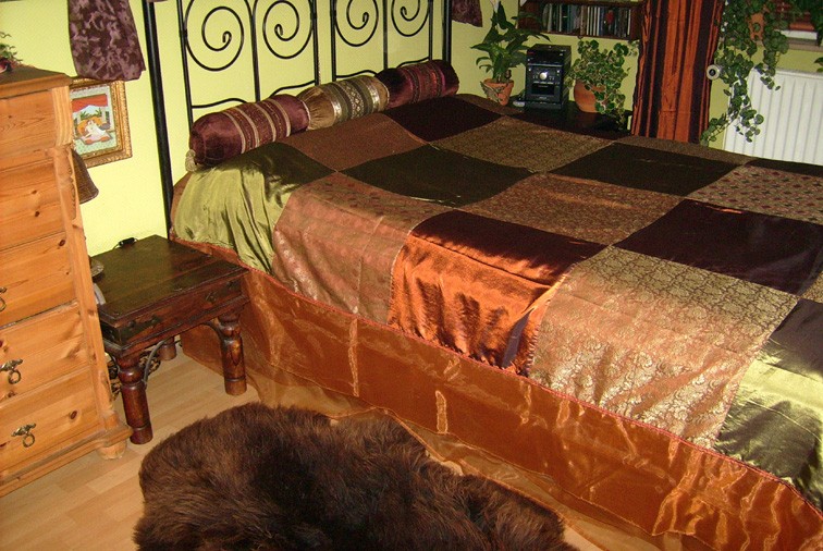 15.645Ich verwende mein Schlafzimmer nicht nur zum schlafen. Es ist auch mein Lese- und Relaxraum. Die Wände sind in 'Kiwi' gestrichen, was aber leider auf den Fotos nicht 'original' rüberkommt. Gemixt mit Kupfer, braun und gold.
