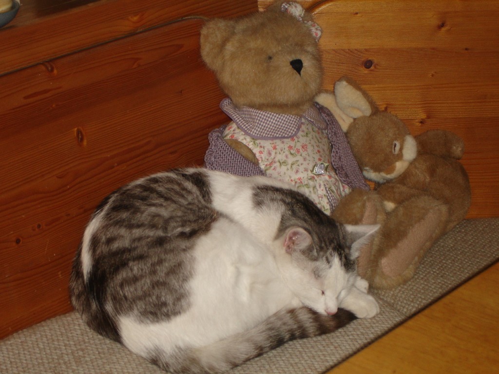 Kitty ist uns "zugelaufen" und hat uns ihre Kinder gleich mitgebracht. Ein Leben ohne unsere Katzen können wir uns gar nicht mehr vorstellen. Die Namen stammen von unserer Tochter ;)
