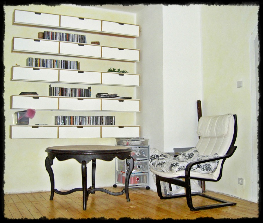 Mein Ikea-Hack zur Aufbewahrung der CD-Sammlung. Noch nicht ganz fertig: Es fehlen noch die Plexiglas Schiebetüren