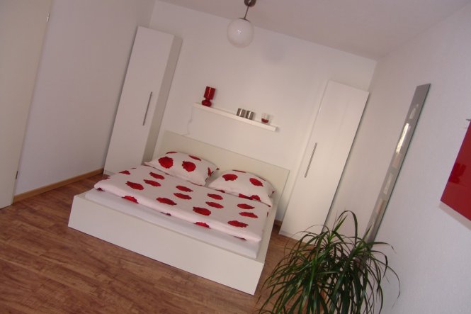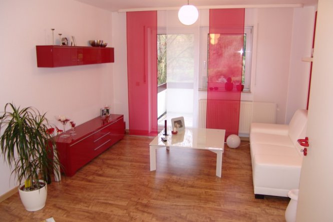 Dies ist die vorherige Wohnung (bin im Wohnzimmer bei der roten Farbe geblieben, da ich nicht wusste was ich mit der Möbel machen soll). Hab aber noch eine dritte Farbe (silbergrau)in dem neuen Wohnzimmer, außer weiss und rot, reingemischt. Sieht irgenwie ruhiger aus...:-)