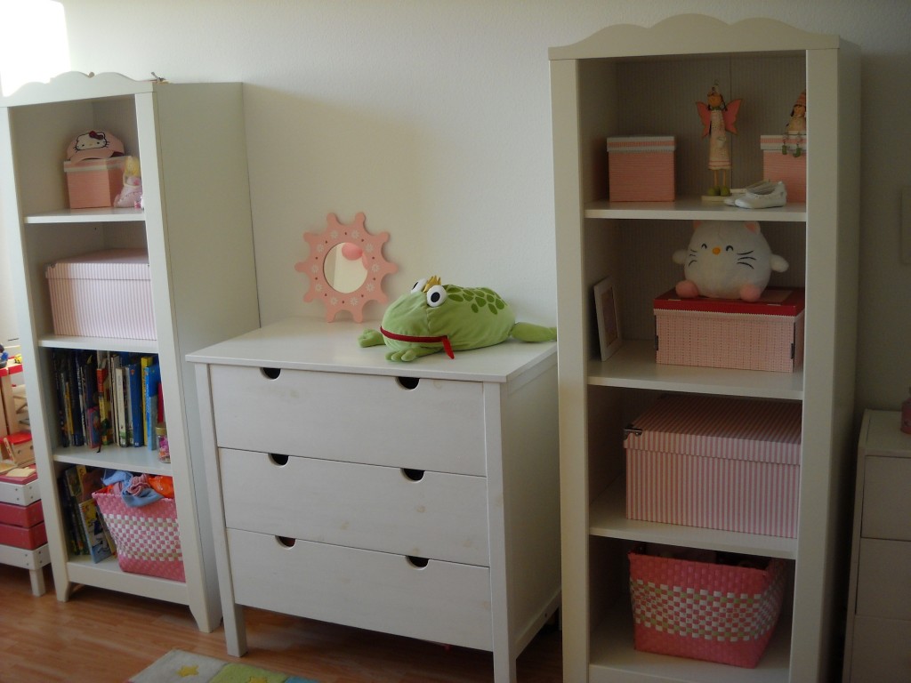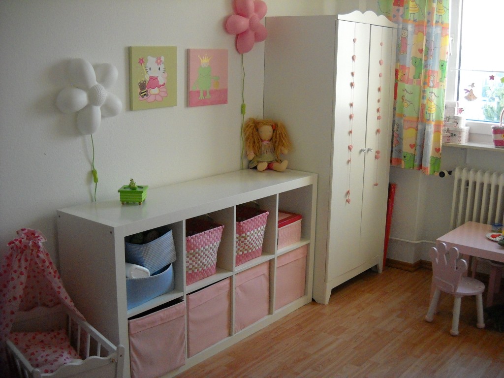 Ich habe alles in weiß, rosa und grün gehalten. Viel Ikea, aber auch ganz viel selbst gebasteltes und gemaltes.