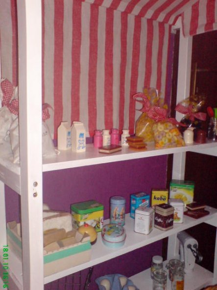 So nun sind der Kaufladen,die Tafel, Spielzeugkiste und die Wiege auch endlich unter denn weissen Pinsel gekommen.