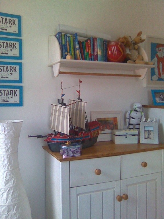 16.930Das Zimmer meines Sohnes Ben... Er findet es ganz toll, so komische Poster von diesen Muskelmännern an den Wänden zu haben. Nun gut, ich habe gesagt, wenn es ihn glücklich macht, dann macht es mich auch glücklich... lach Schließlich ist es ja sein Zimmer und er soll sich darin so richtig wohl fühlen. Ich glaube, das ist uns ganz gut gelungen. Für einen 9-Jährigen ist es gar nicht so einfach, die richtigen Farben zu finden, die das Zimmer nicht mehr all zu kindlich es aber auch nicht zu erwachsen wirken lassen.