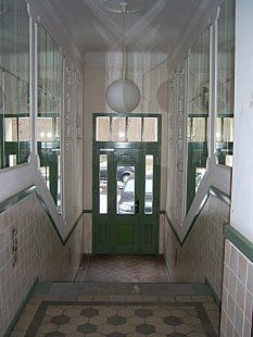 Ansicht Richtung Wohnungstür. Gegenüber des Schränkchens geht es ins Bad.