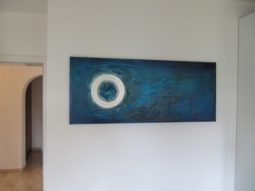 Sockelplatte habe ich selber gefräst und lackiert. Der Stein ist ein ca. 35cm hoher Labradoritstein