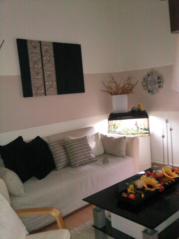 15.664Wie man sieht ist unsere Wohnung noch ein kleiner Stilmix. Was wir nach und nach in kleinen Schritten ändern: Das weiße Sofa wird ersetzt durch ein schwarzes Ledersofa (mit weißen Nähten). Genau das erfolgt im Essberreich, die Stühle wie das Sofa und der Tisch wie unser jetziger Coutchtisch. Die Wandfarbe wird noch grau umgestrichen. Wir wollen alles in grau- weiß- schwarz Tönen halten. Bilder folgen natürlich mit Veränderung...