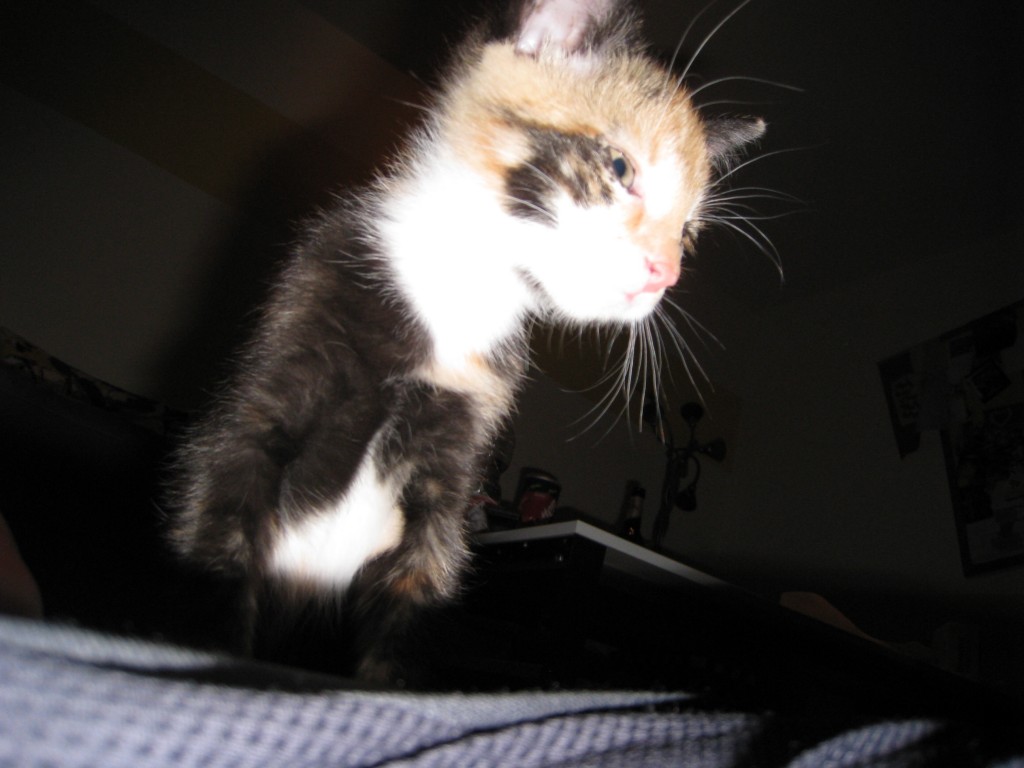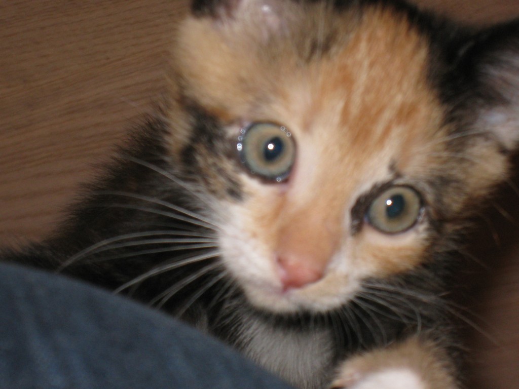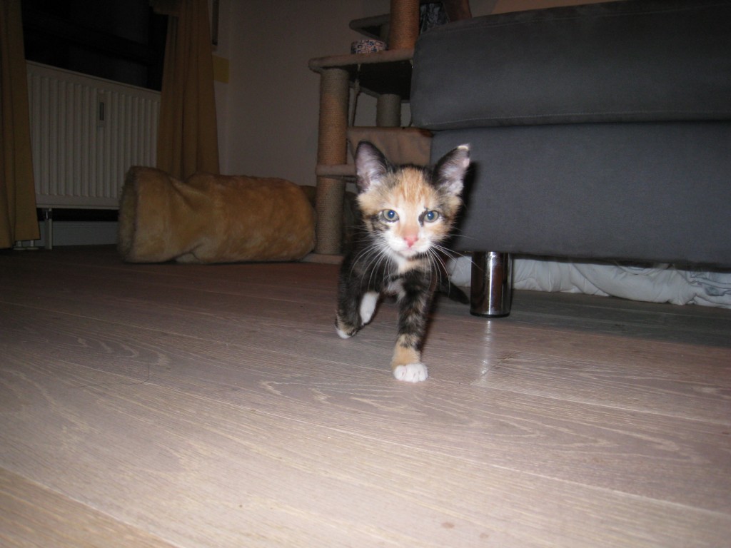 Mein neu Zugang, Pinki ein kleines freches dreifarbiges Kätzchen. jetzt ca. 9 Wochen alt und fühlt sich hier pudel wohl.