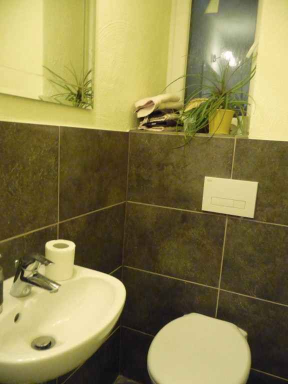 das Durchgangsbad, mit insgesamt 3!!! Türen (eine davon zum Keller) ist nun verkleinert und zum Gäste-WC geworden.