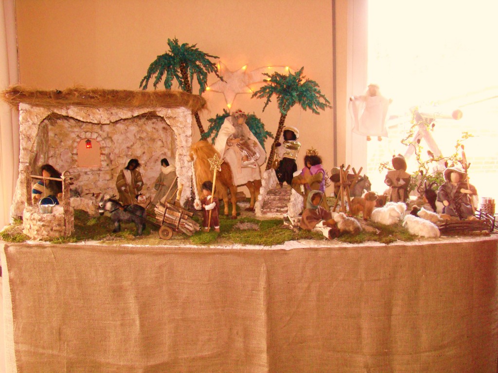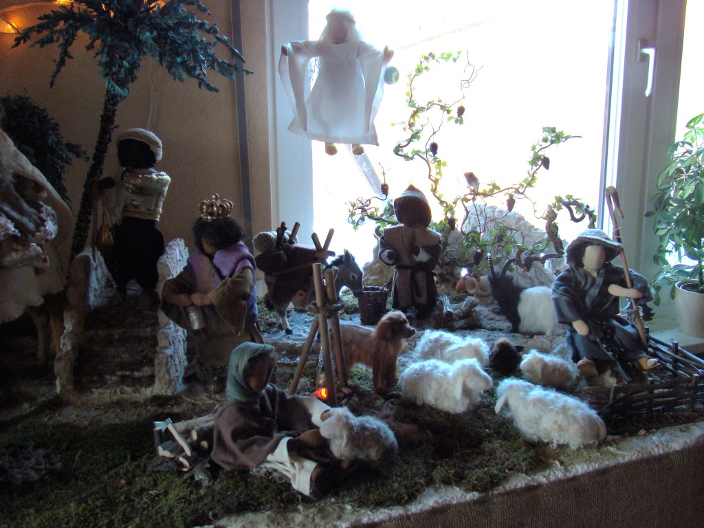Die Krippe ist 2 m breit,die Figuren jeweils 28 - 30 cm,ich habe letztes Jahr damit angefangen...und dieses Jahr freu wird sie hoffentlich komplett mit allen Figuren....hier schon mal ein kleiner "Einblick"