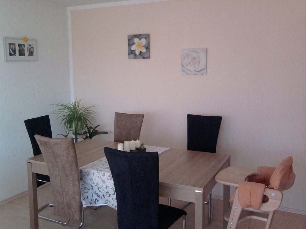 Unser Wohn-/Esszimmer ist ca. 25 qm groß. Auf unserer Sofalandschaft können wir es uns richtig gemütlich machen. Der Tisch im Essbereich ist ausziehbar und praktisch für viele Gäste!