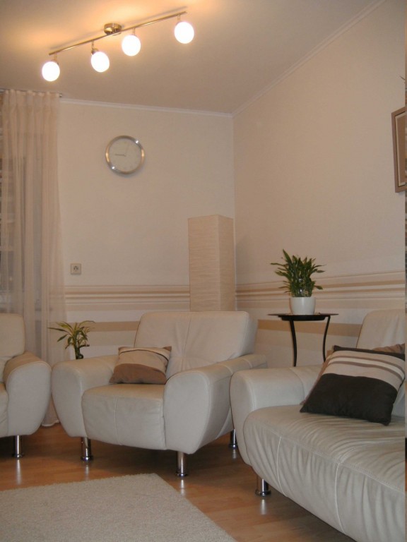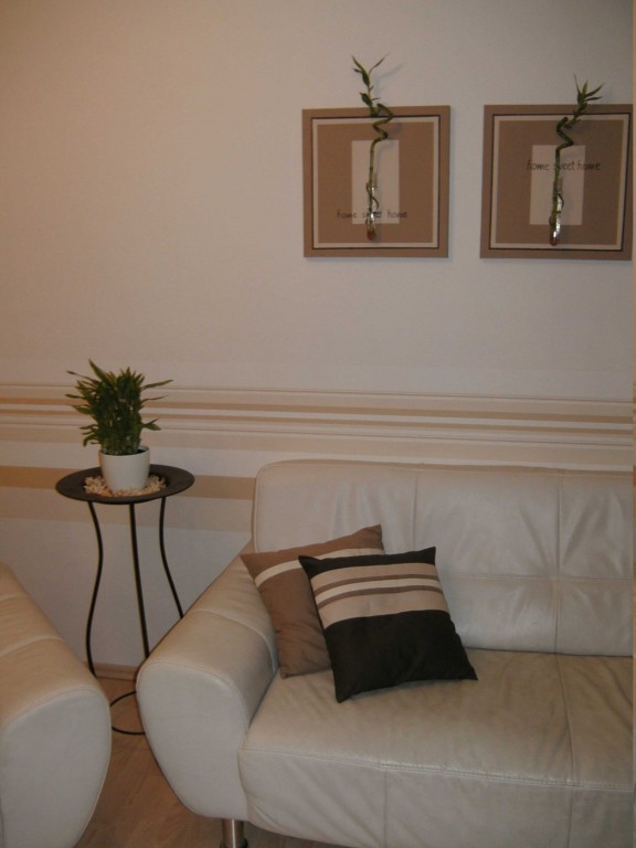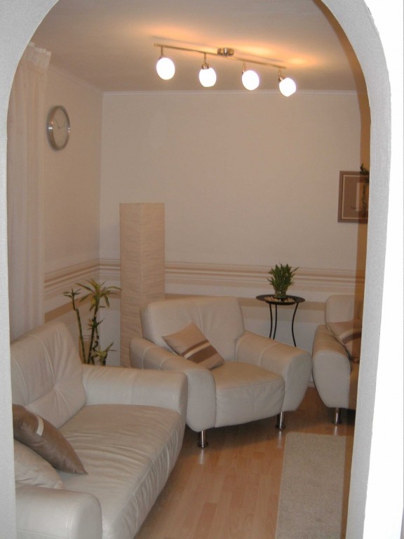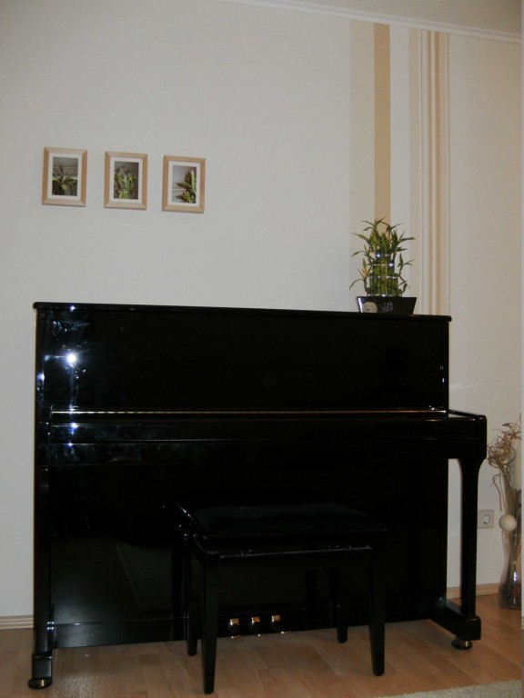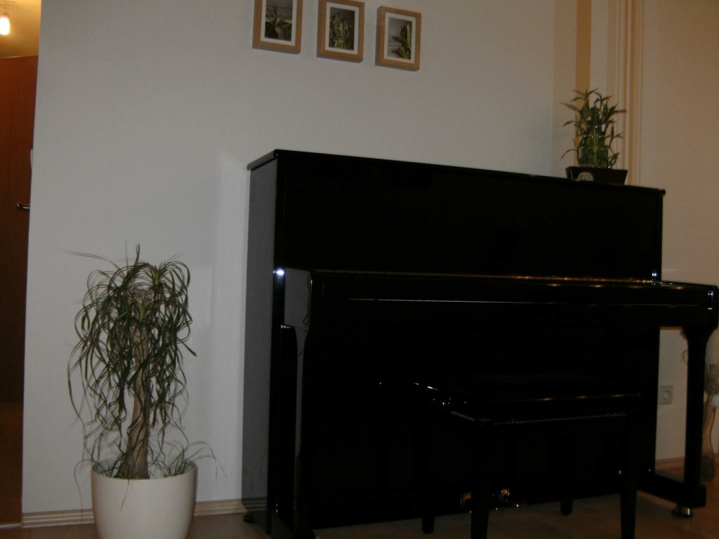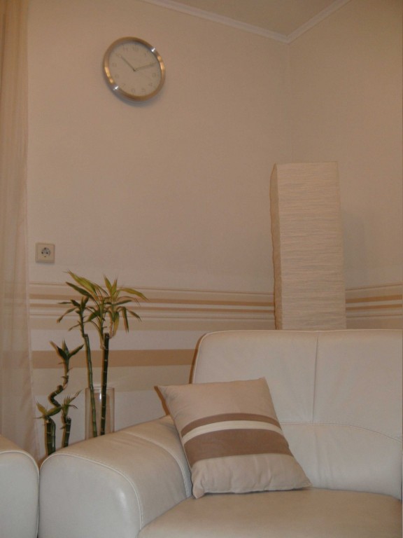 9.651Hier haben wir die uralten Türen rausgemacht. Das Laminat haben wir hier (und in der Garderobe) über ein altes Parkett verlegt, das trotz Abschleifen nicht schön aussah und außerdem auch Wasserschäden hatte. Tapeziert haben wir vor kurzem und dann auch gleich die Farbe verändert. War früher orange/gelb.