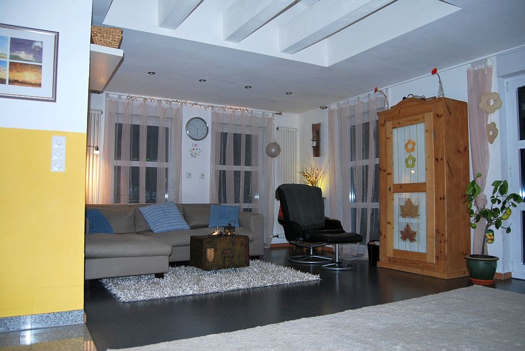 Wohnzimmer mit neuer Couch und neuem Licht.