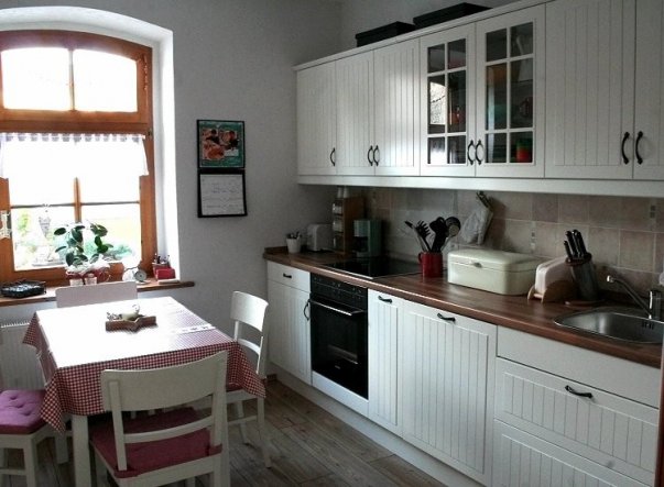 Unsere Küche haben wir im Herbst 2009 bei IKEA gekauft und selbst aufgebaut. Die Arbeitsplatte stammt aus dem Baumarkt.