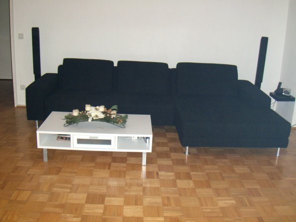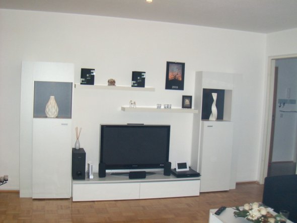 Wir wohnen noch nicht sehr lange hier. Haben unser Wohnzimmer in schwarz/weiß eingerichtet. Ein paar Accessoires und Bilder fehlen aber noch ;-)