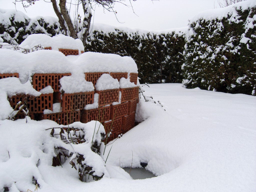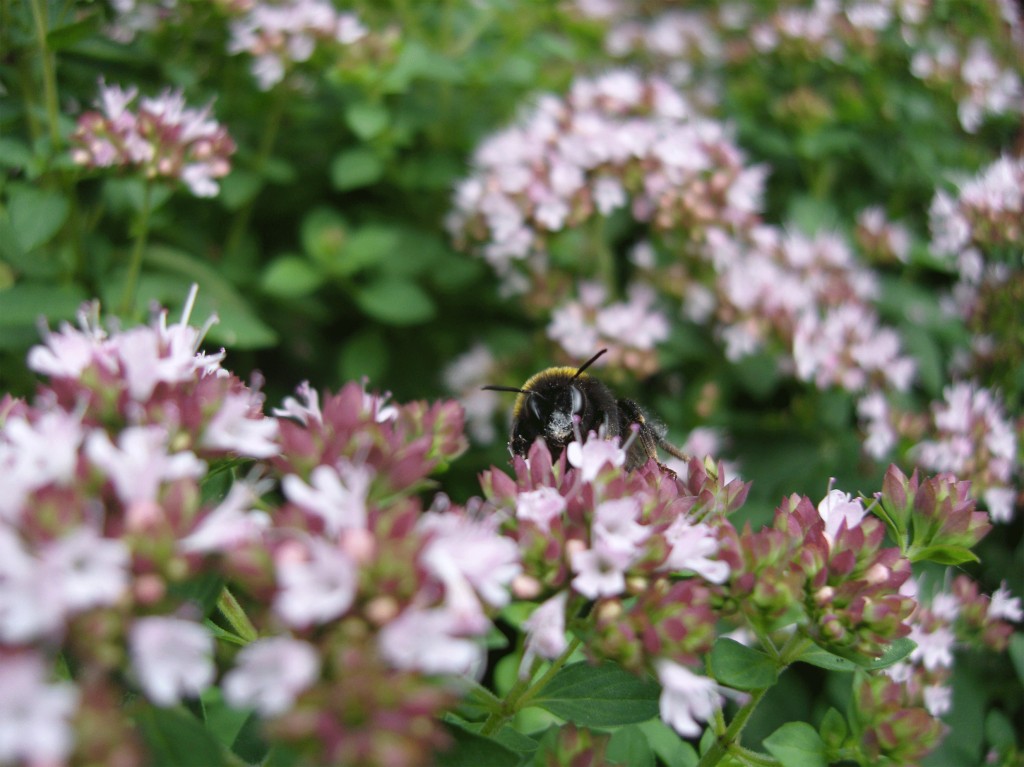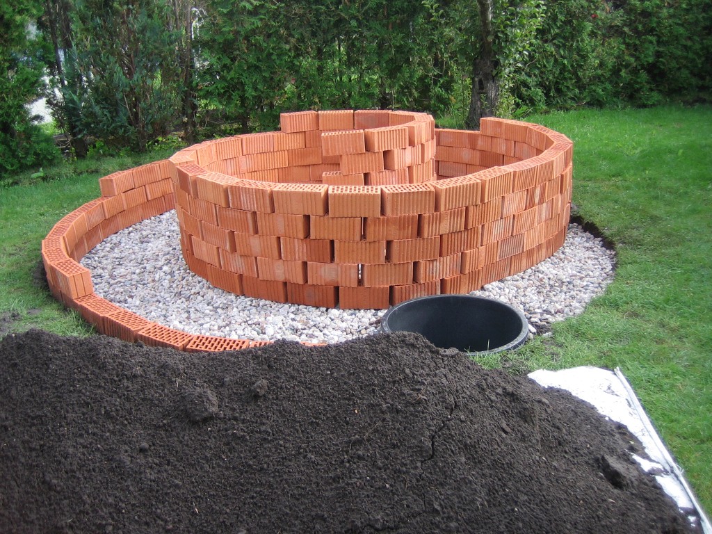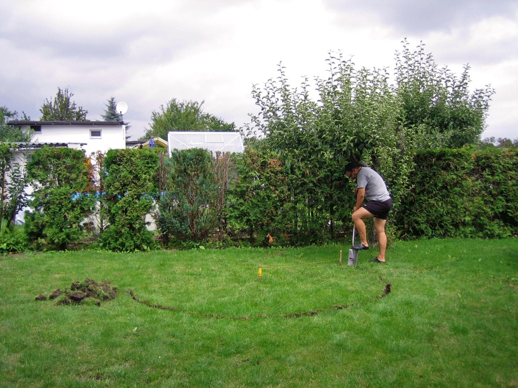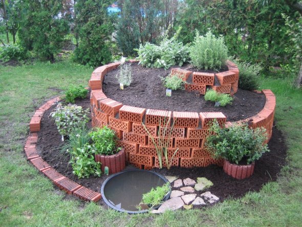9.482Ich wollte gern alle Kräuter an einem Ort haben, sie sollten auch von allen Seiten gut erreichbar sein. So entschied ich mich für die Kräuterspirale. Im Durchmesser ca. 3 m und etwa 1,5 m hoch. Mit Feldsteinen sähe es schöner aus, so ist sie aber stabiler. Erdaushub etwa einen halben Spatenstich, aufgefüllt mit grobem Kies (als Drainageschicht). Vom "Herz" aus mit der Befüllung mit magerer Erde beginnen, nach außen hin soll die Erde "fetter" werden. Wer es ganz genau wissen möchte, der frage mich einfach... ;-))))