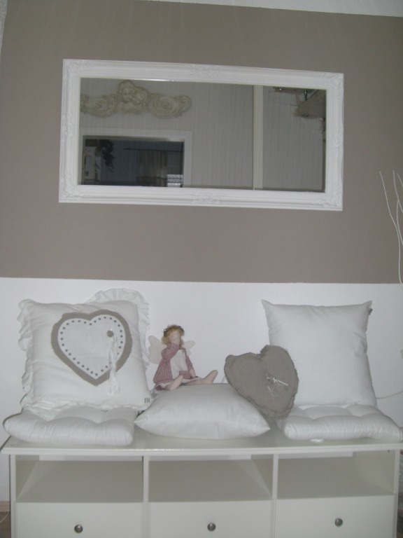 Nachdem wir unsere Flurmöbel in den Keller "verbannt" haben,mussten die Wände neu gestrichern werden.Durch die Kerzen sah man die Umrisse der Möbel und Bilder.Erst war ich ganz traurig aber nun,wo er fast fertig ist...gefällt es mir viel besser..