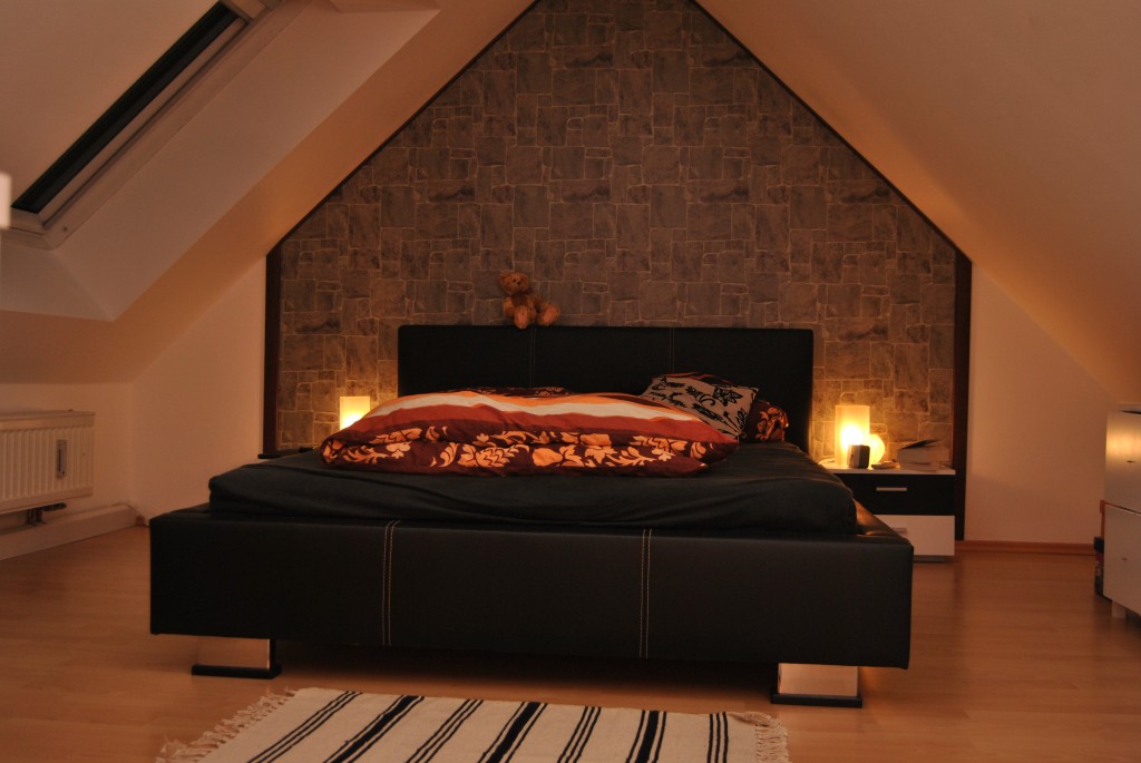 Mit der Steintapete bekommt das Ganze einen natürlichen Touch.