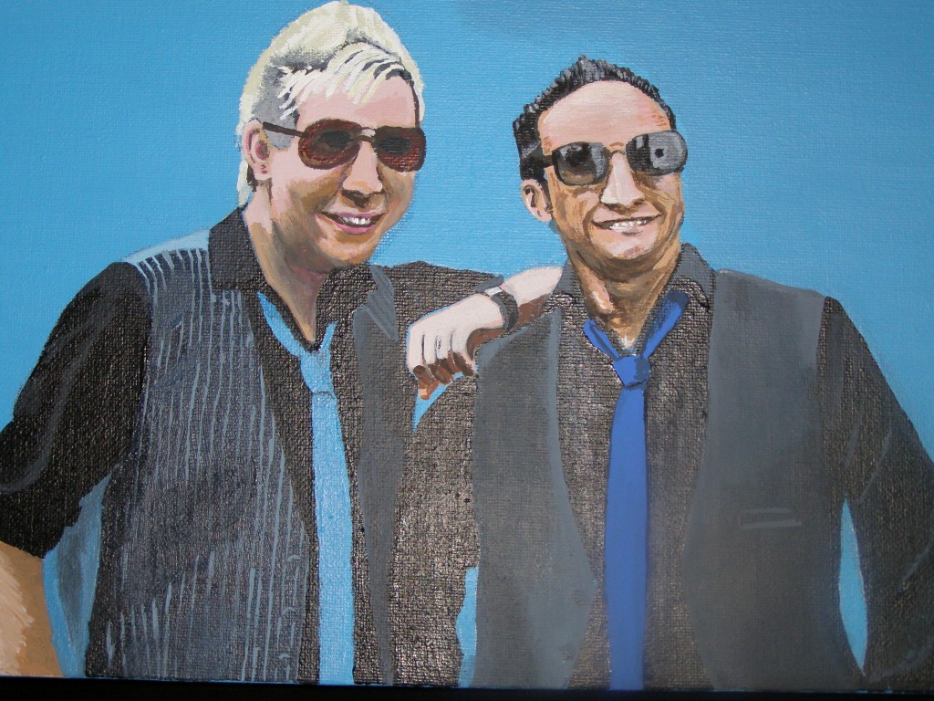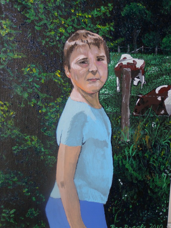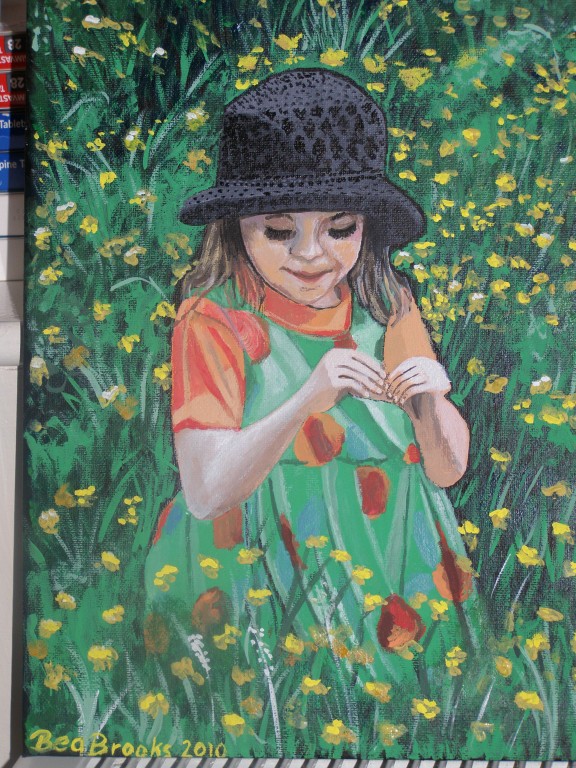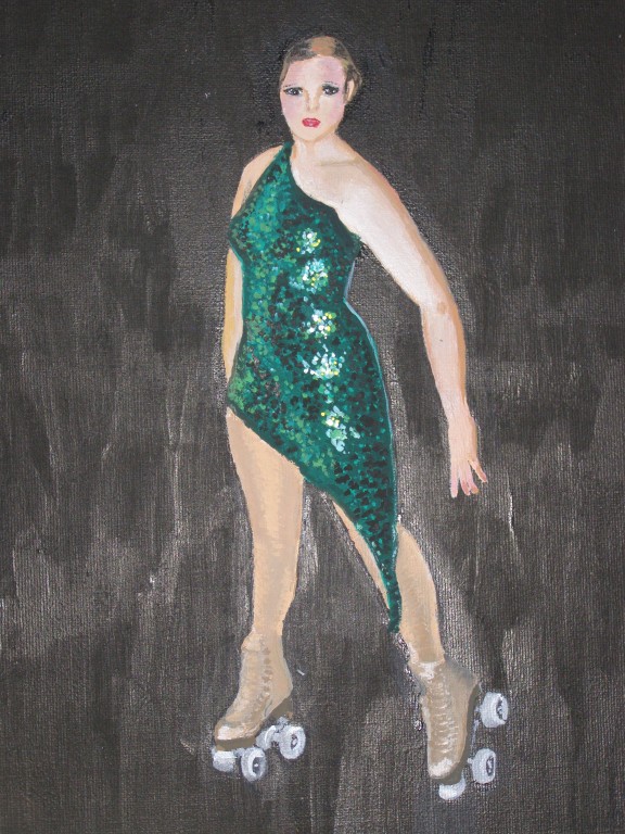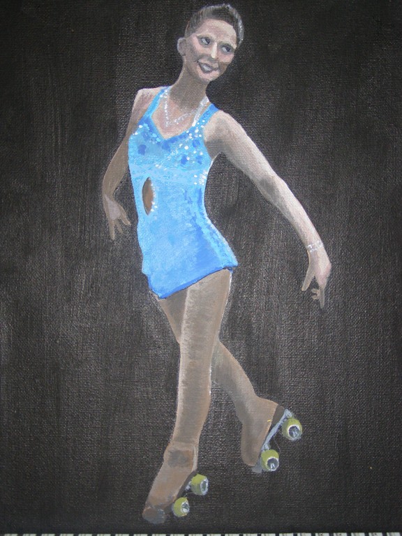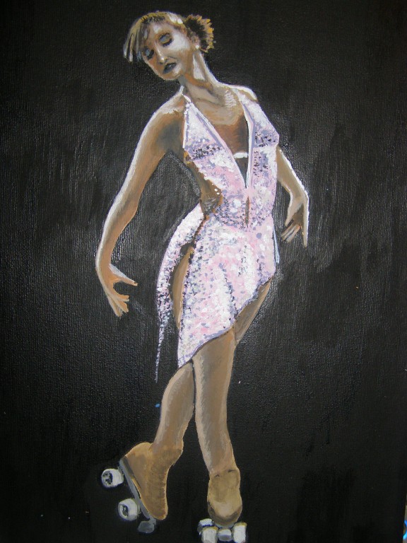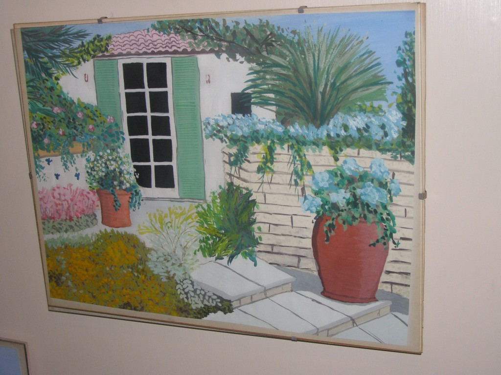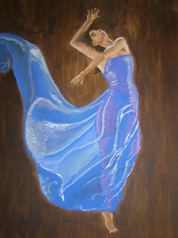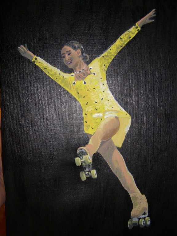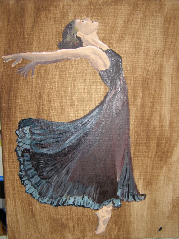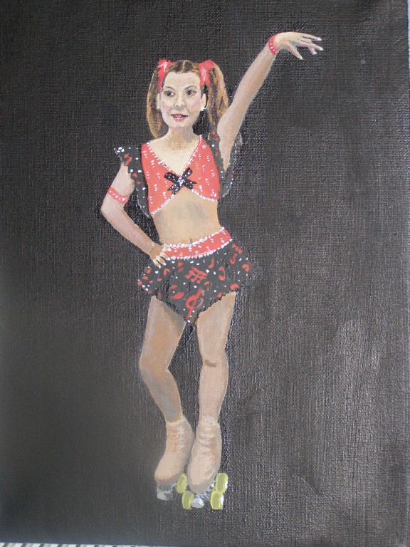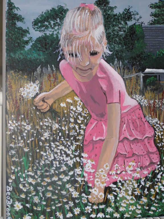 7.309Die weissen Blumen habe ich fuer mein Wohnzimmer gemalt. Die Bauchtaenzerin ist das erste von 4 Taenzerinnen die ich malen moechte. Mein naechstes Project sind die Maedels vom Rollschuhclub. Angefangen hab ich mal mit meiner Tochter Tanya. Um ein paar haessliche loecher in der Wand zu verstecken hab ich ein grosses Winterbild gemalt. Die zwei netten Manner sind Schauspieler hier. Sie waren die haesslichen Schwestern in Cinderella, wo ich kuerzlich hinter der Buehne ausgeholfen habe.