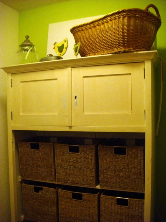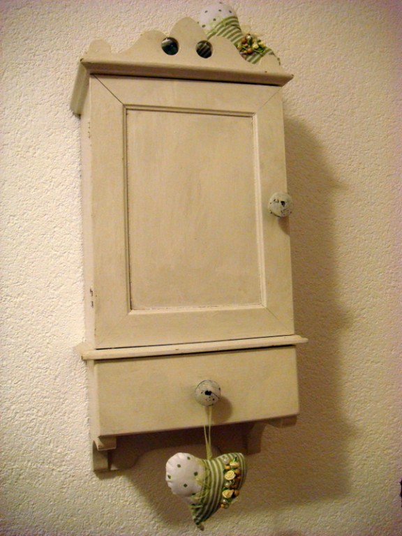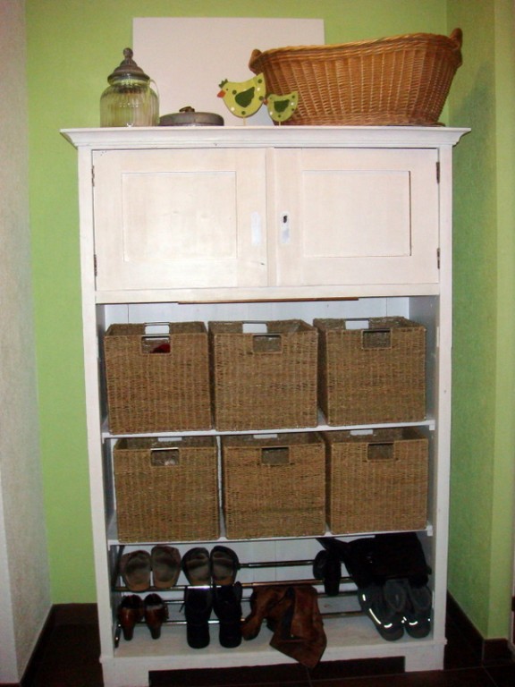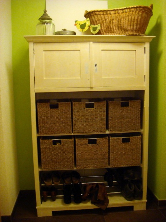 stand lange bei meinem Opa in der Dreherei, leider waren die Türen verschwunden. Ich habe ihn weiß angemalt und Körbe reingestellt.