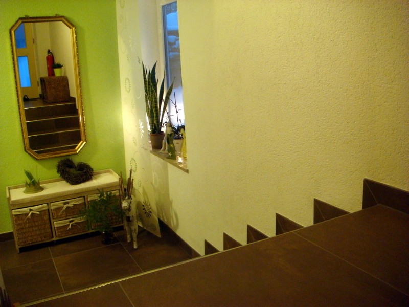 9.806Der alte Flur wurde neu gefliest und ich habe versucht ihm mit frischer grüner Farbe ein schöneres Gesicht zu geben.