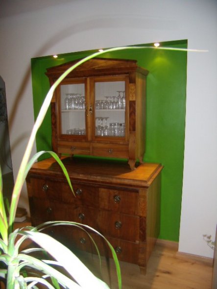 Früher war hier ein Schlafzimmer und ein ungenutzter Vorraum. Wir versuchten Altes und Neues zu kombinieren. Hie und da fehlen noch Bilder, Vorhänge usw...