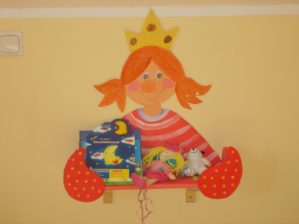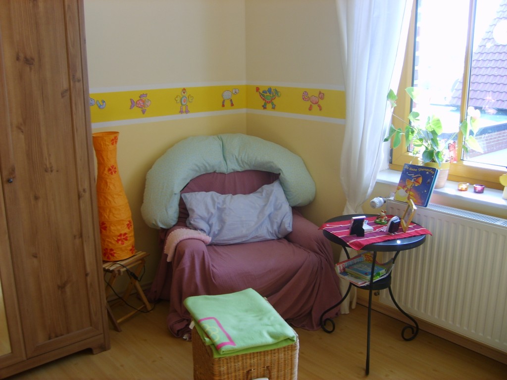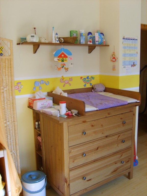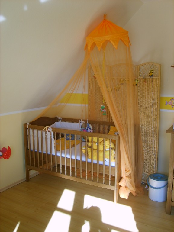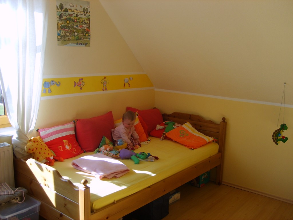 11.410Das Zimmer wurde 2007 vor der Geburt, unserer jetzt 7 Monate alten Tochter, mit viel Liebe eingerichtet. Einige Details, wie die Bordüre und das Prinzessinenregal, habe ich selber gemacht. Die Grundfarbe des Raumes ist gelb, die Möbel zum größten Teil von IKEA.