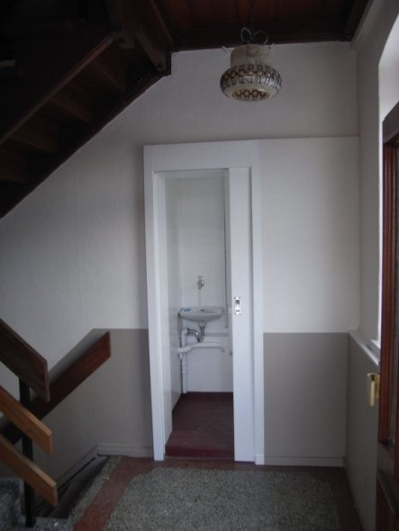 11.098Unser Treppenhaus, das ebenfalls noch renoviert werden muss. Ich dachte an einen Teppich, weil das Treppenhaus der Aufgang zu den Schlafräumen ist. Aufarbeiten wollten wir die Treppe nicht. Schade, dass das originale Geländer nicht mehr vorhanden ist. Gestaltungsideen nehme ich gerne entgegen. Schwanke zwischen modern/klassisch. Früher gab es in diesem Haus eine Galerie. Heute sind die beiden Geschosse durch das Treppenhaus zu erreichen und jedes Geschoss hat einen eigenen Eingang. Aus dem Einfamilienhaus wurden zum Schluss zwei seperate Wohnungen gemacht. Wir werden beide nutzen - unten wohnen, oben schlafen, auf dem Dachboden wer weiß das schon ;)