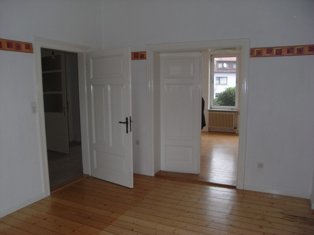 8.205Wie gesagt, Wohnzimmer und Esszimmer sind so noch von der Vorbesitzerin. Wir haben hier noch nichts renoviert (die Bordüre ist nicht sooo mein Geschmack) :) Rechts neben der Flügeltür wird im Wohnzimmer ein Kamin eingebaut.