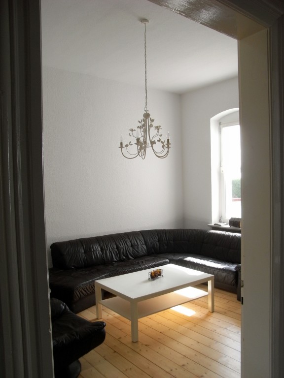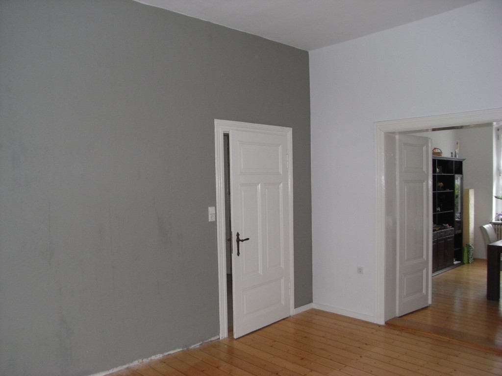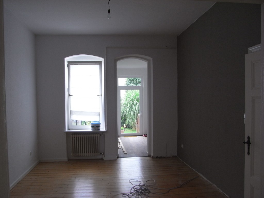 August 2010: Die Bordüre ist ab, die Wände sind frisch gestrichen und die Dielen werden noch abgeschliffen. Dann endlich können wir das Wozi nutzen :)