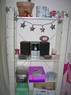 Da ich eine offene Küche habe ist der Essbereich gleich nebenan. Der dunkle Holzton passt gut zu meiner Küchenfront und auch zur Arbeitsplatte, wie ich finde also musste ich den Tisch haben =)