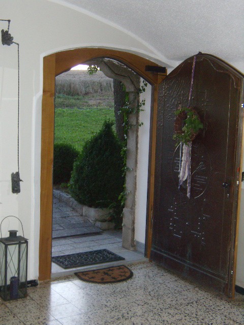 Granittürstock und Kupfer-Türblatt sind alte Teile. Der Rest wurde erneuert (Trägermaterial, Schloss mit Finger-Print, Aufhängung...)
