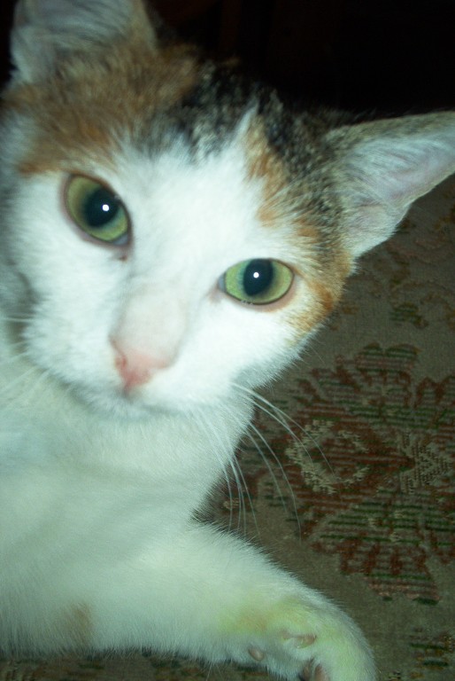 "Schrödinger"ist die bunte Hauskatze.Sie ist sehr scheu und ängstlich (von einer Katzensammlerin 18 Katzen!!!!)Sie macht gern Blödsinn.Sie liebt es Plastik zu fressen,Blumen auszubuddeln.Darum hab ich keine Blumen.