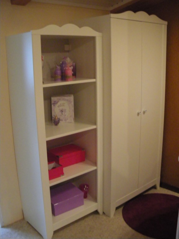 Hier haben wir eine Dachschräge. Dadurch hatten wir ein Problem beim Schrank kaufen. Wir haben uns dann für Kinderzimmermöbel vom Schweden entschieden, da sie nicht so hoch sind wie Kleinderschränke für Erwachsene!