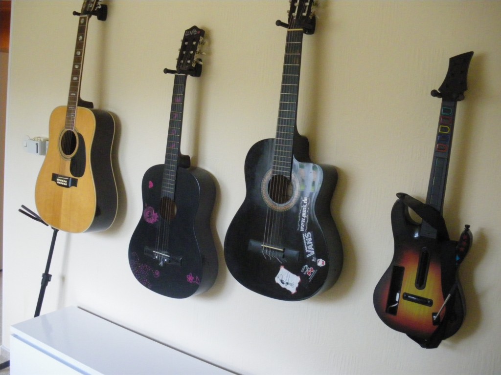 In den grünen Boxen werden Kabel (für Gitarren und Verstärker) und selten benötigte CD´s aufbewahrt.