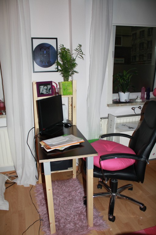 9.441Mein Wohnzimmer, zwei kleinere Räume die durch einen Durchbruch verbunden sind. Im vorderen Teil befinden sich Kleiderschrank, Kommoden, Regal im zweiten Teil Sofa, TV, Schreibtisch und ein Hochbett zum Schlafen