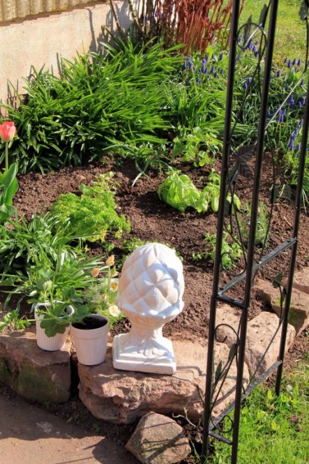 Umgestaltung Kräuterbeet..direkt an der Terrasse! War ein etwas verwahrlostes Blumenbeet. Habe verschiedene Kräuter gepflanzt...ein paar Blumen dürfen bleiben. Muß für die Einfassung noch Sandsteine sammeln.