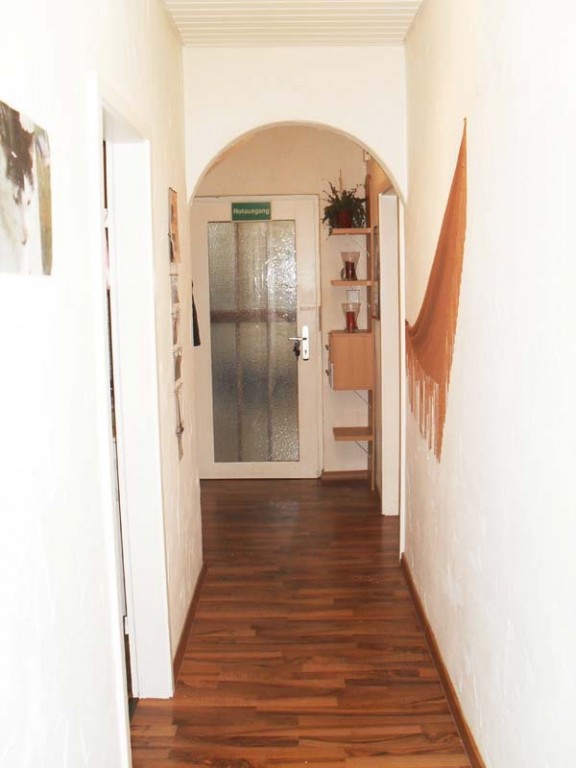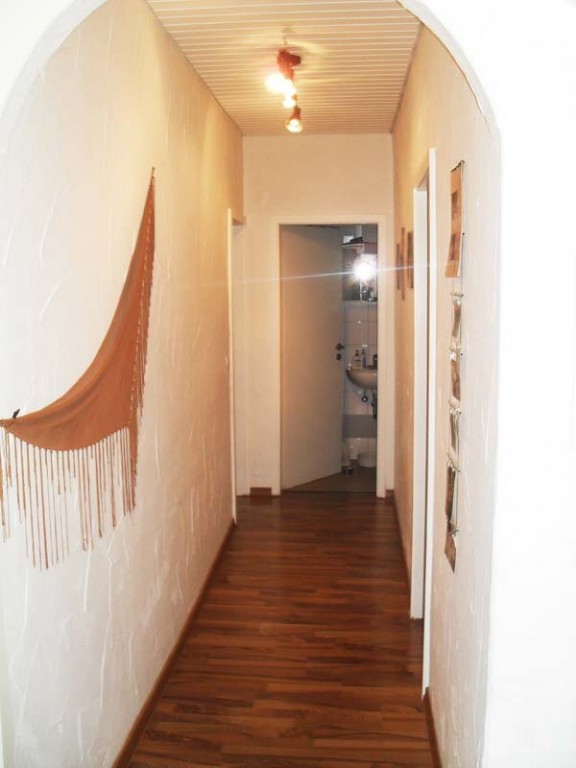 Hier nun der Eingangsbereich... auch wenn die Wohnung ansich sehr klein ist, wirkt es durch den langen Flur - von dem alle Räume abgehen - doch nicht zu beengt
