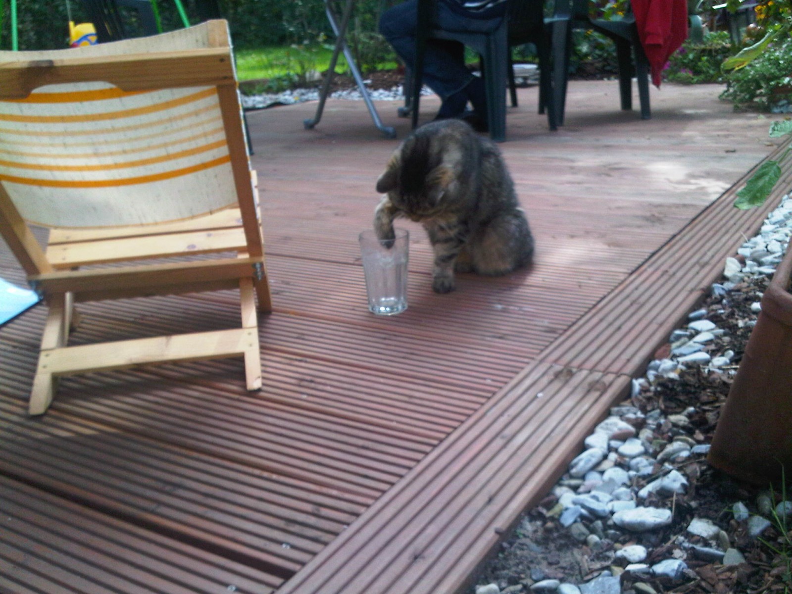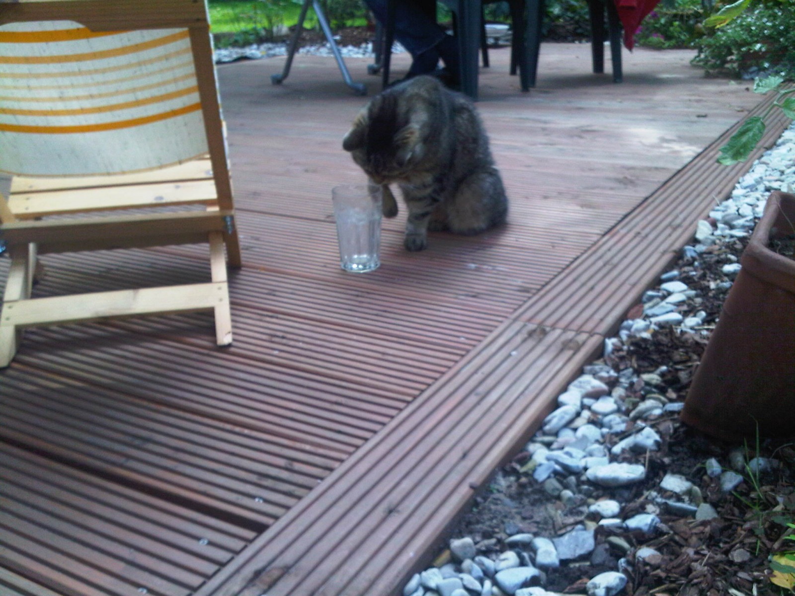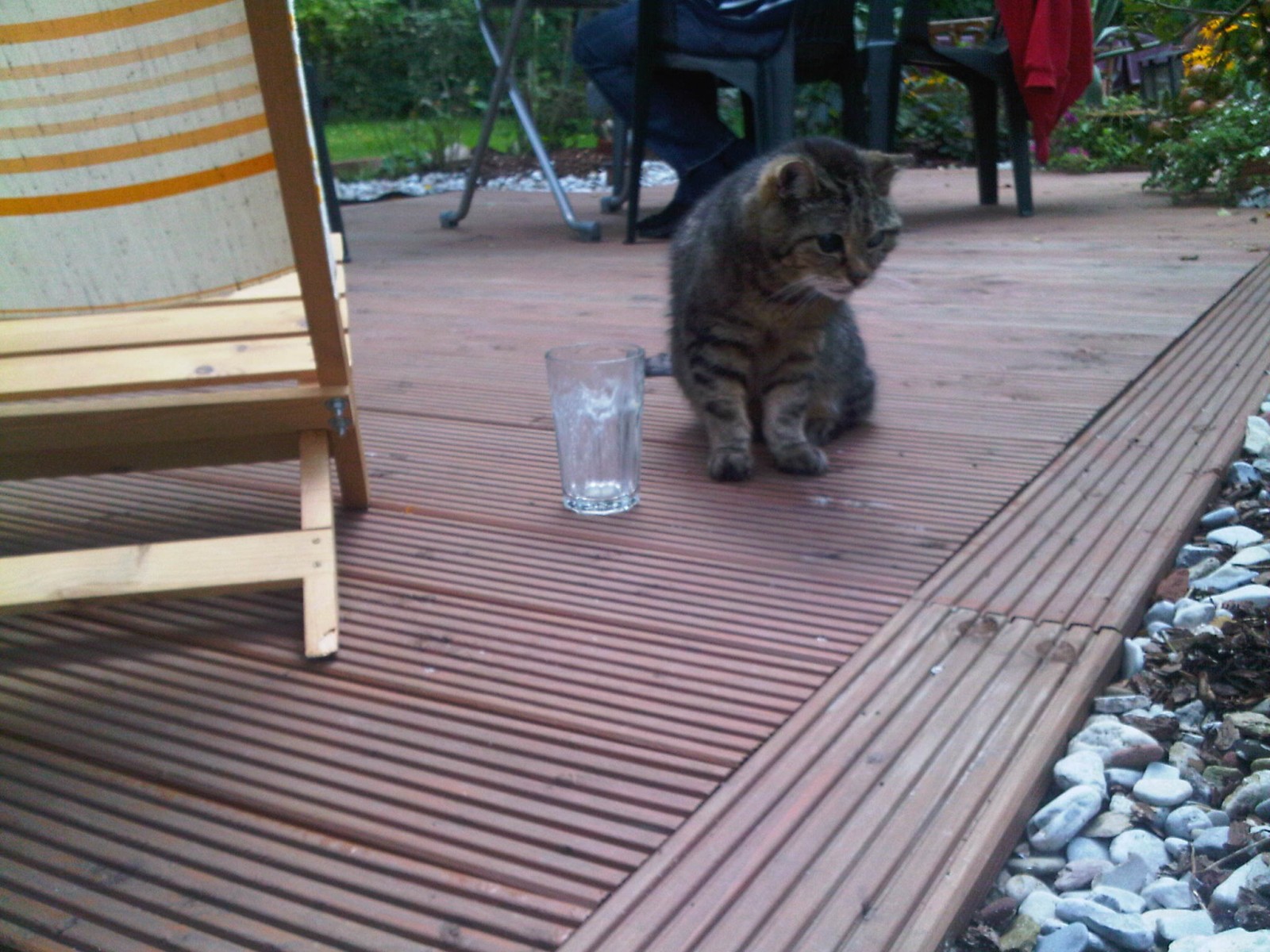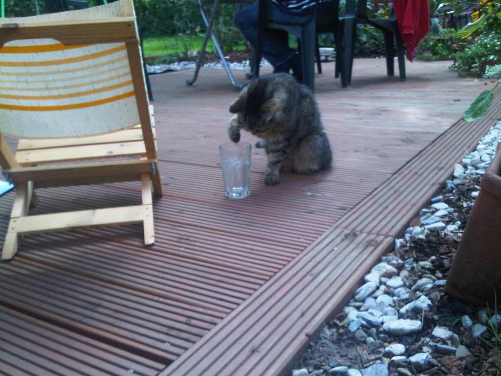Unser Hauskater mit seiner Leibspeise - Joghurt :-) und beim Probieren von Aprikosenmilchshake