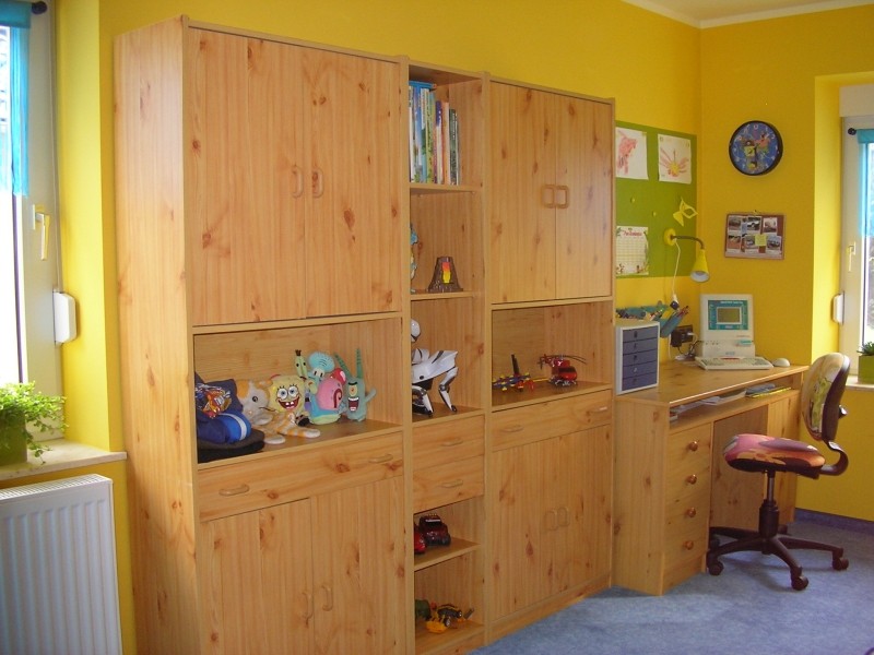 Das sind noch die alten Kinderzimmermöbel der beiden Großen. Da er bestimmt in 3 Jahren auch ein modernes Teenie-Zimmer möchte haben wir jetzt nicht extra neue hierfür gekauft.
