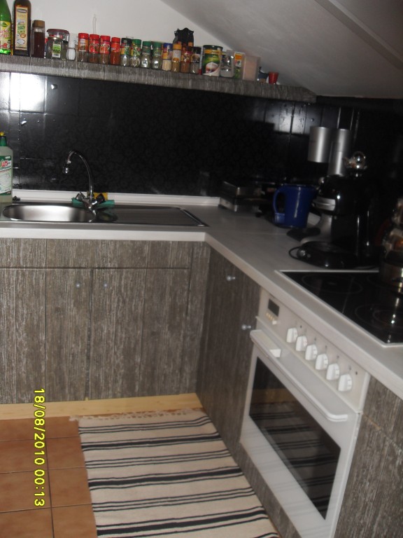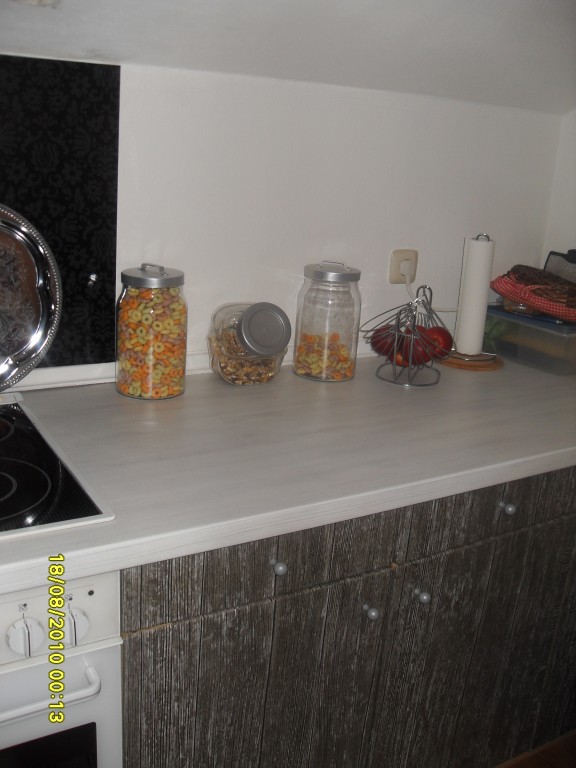 ich habe die küche neu überzogen man merkt es unten an der leiste da is sie noch hell die arbeitsplatte is auch neu.