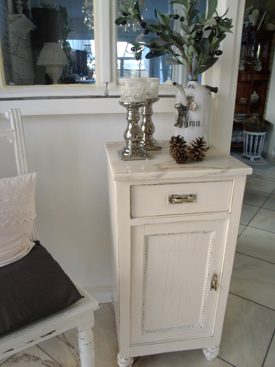 15.15501.02.2012 so,das nachtschränkchen steht,da oben drauf die platte defekt war mußten wir die durch eine marmorplatte ersetzen,mir gefällt es total gut, gglg annett