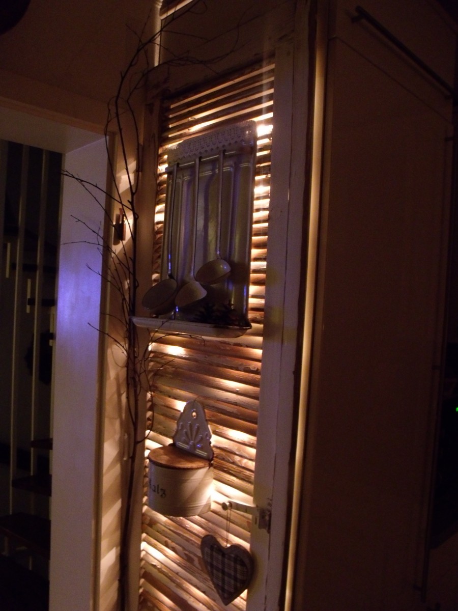 auch ein paar neue lampen habe ich gebastelt,eine neu zu kaufen war mir zu teuer,also ich überlegt,ich hatte noch ein paar kerzenständer die innen hohl waren,schatzi hat mir kabel durchgelegt,dann habe ich aus gibsbinden die schirme gebaut und schon waren sie fertig....