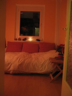 Hier mit neuen Seitengardinen.... und man sieht auch noch ein Stück von den Boxen, die wir mit weißer Folie beklebt haben.