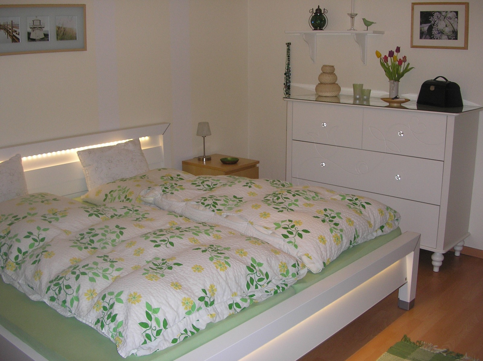 Endlich ist unser neues Bett da. Weiß und modern, was- wie wir finden- sehr gut zur restlichen Einrichtung im Schlafzimmer passt.