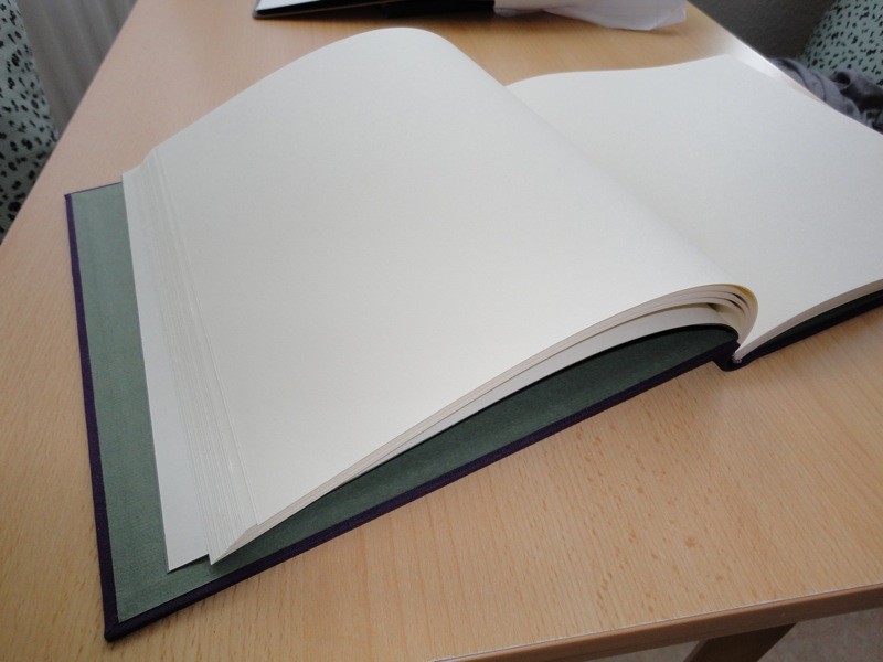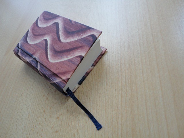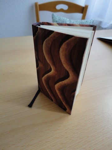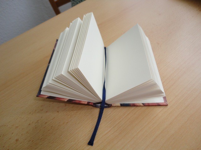 6.4541. Mein erstes selbstgemachtes Büchlein. Es ist Blanko und mit Kleisterpapier überzogen.