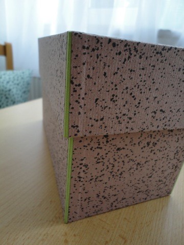 3. Kästchen mit Stülpdeckel... wurde an den Ecken mit grünem Gewebe bezogen und das schöne gesprenkelte Papier nennt sich Kibitz.