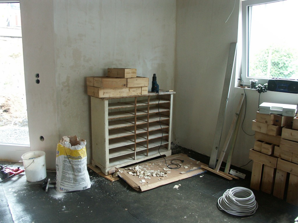 8.029Da wo jetzt der noch nicht fertige Schrank steht, wird der Esstisch stehen