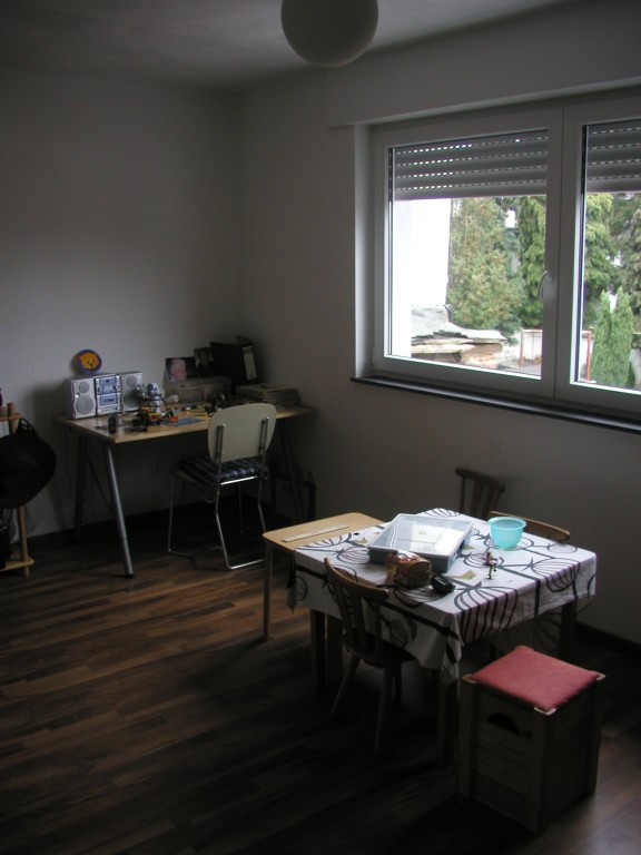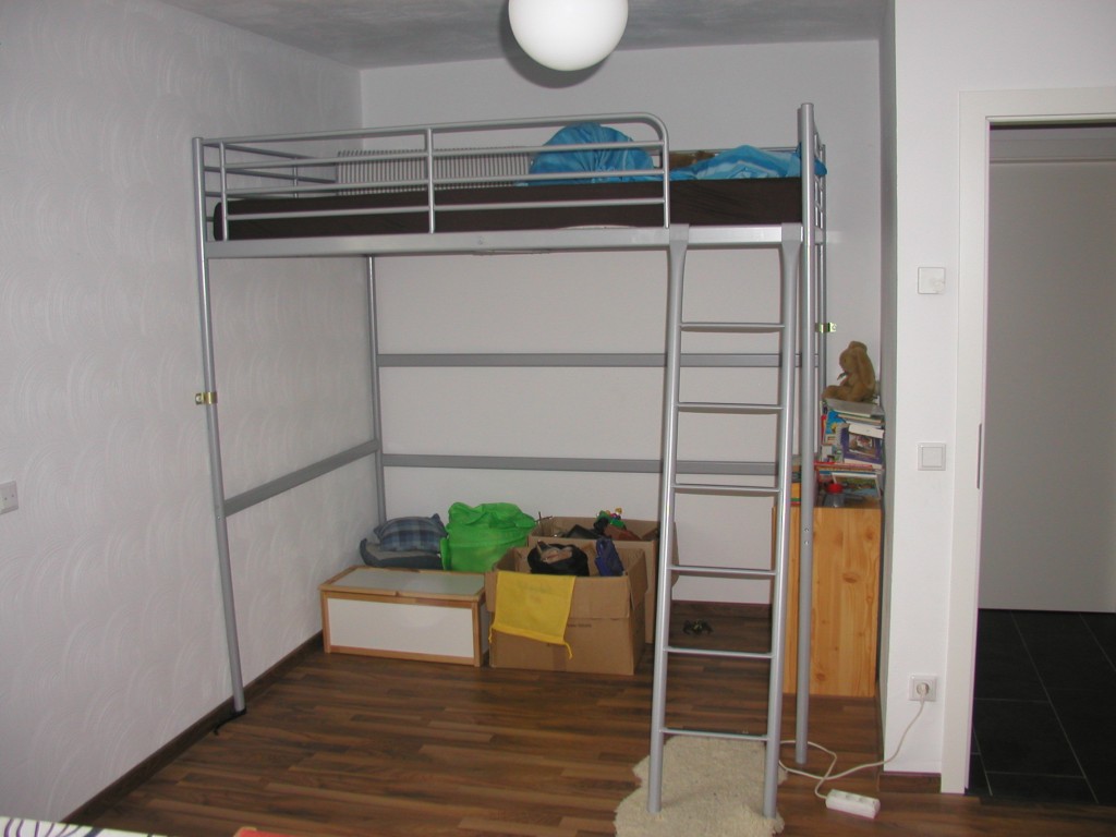 Hier schläft und spielt mein jüngster Sohn (9). Im Moment noch Chaoszimmer, da ich viele meiner Sachen hier noch lagere. Außerdem braucht er dringend ein Regal, denn im Moment sind viele seiner Sachen noch in Kartons ;-)