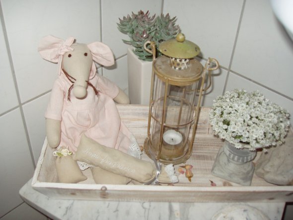 Die Stoffmaus und die kleinen Duftsäckchen habe ich letzte Woche in Dänemark gekauft. Noch stehen sie bei uns im Gäste-WC.